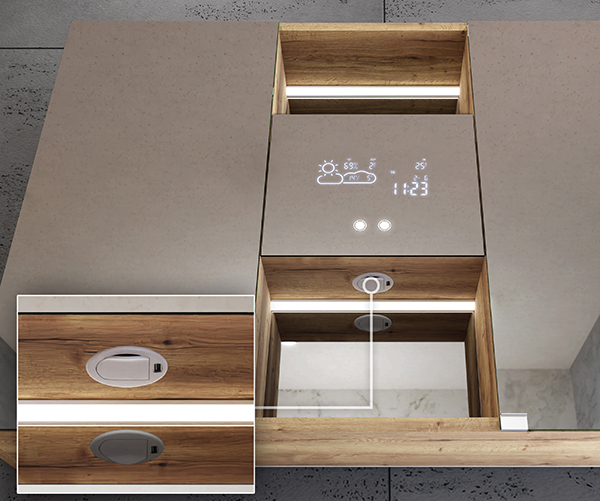 Een badkamerkastje met een digitale klokzorgt ervoor dat je altijd de tijd onder controle hebt. Ook kan het meubel de datum en het weer aangeven. Het badkamerkastje met weerstationis ook verkrijgbaar in een versie met een intelligent display waarop je je favoriete series kunt volgen.