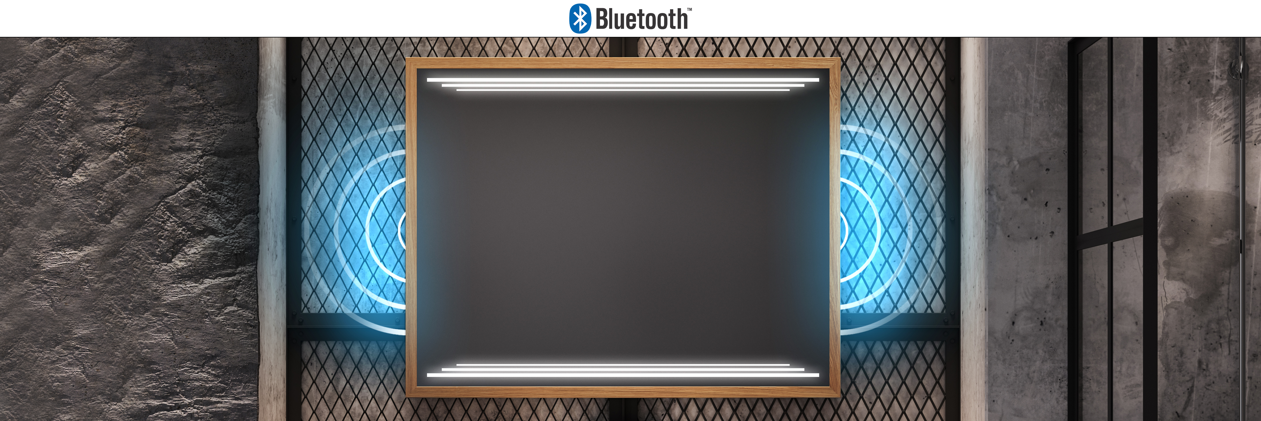 De badkamerspiegel met omhoog-omlaagverlichting kan ook worden uitgerust met een luidspreker. Verborgen achter het oppervlak kunt u genieten van een ontspannend bad terwijl u naar uw favoriete nummer luistert.