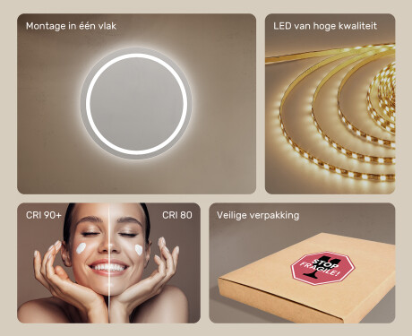 We bieden drie varianten van LED-achtergrondverlichting aan: 7000K, 3000K en 4500K. Kies er een die de verlichting perfect afstemt op de stijl van je badkamer en creëer de juiste sfeer. Koud licht van 7000K is ideaal voor nauwkeurige make-up, warm licht van 3000K zorgt voor gezelligheid en neutraal licht van 4500K is een geweldige keuze voor dagelijks gebruik.